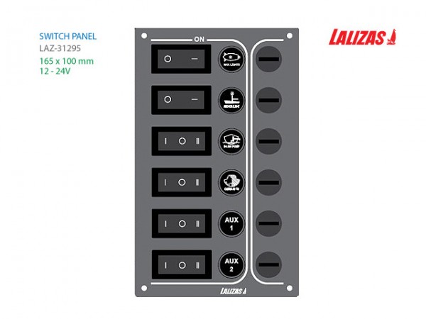 LAZ-31295 (6-스위치 판넬 12/24V 16.5x10cm) - 12/24V 공용, 방수 방부식 SS 판넬