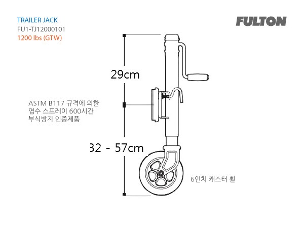 기본 사양: FU1-TJ12000101 (트레일러 잭 (545kg)) - 1,200 lbs, 스위블형, 볼트 조립