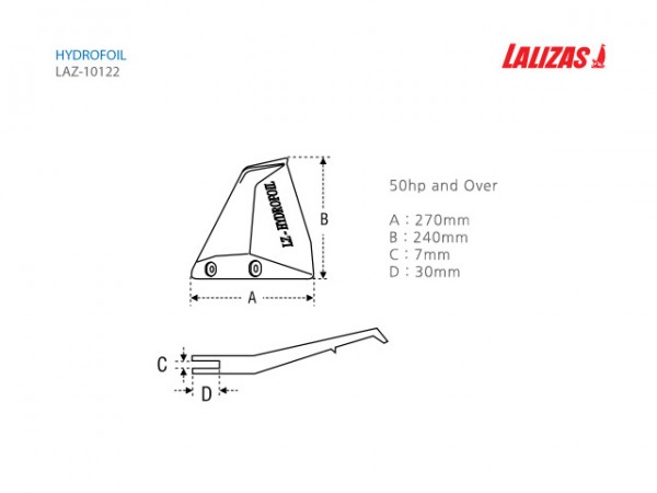 가장 이상적인 위치는 하이드로포일을 프로펠러에서 2cm 전방에 설치하여 프로펠러 전체를 덮도록 하는 것입니다.