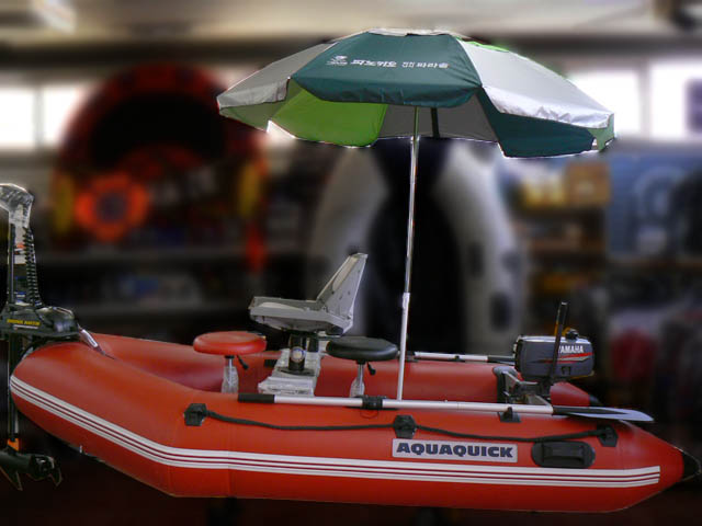 보트의 바닥판에 파라솔 꽂이를 설치하면 저렴한 비용으로