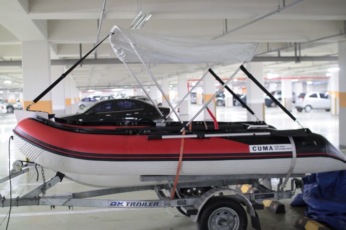 도하츠18마력(선외기캐리어, 부상판(미설치), 연료통, 틸러연장봉)