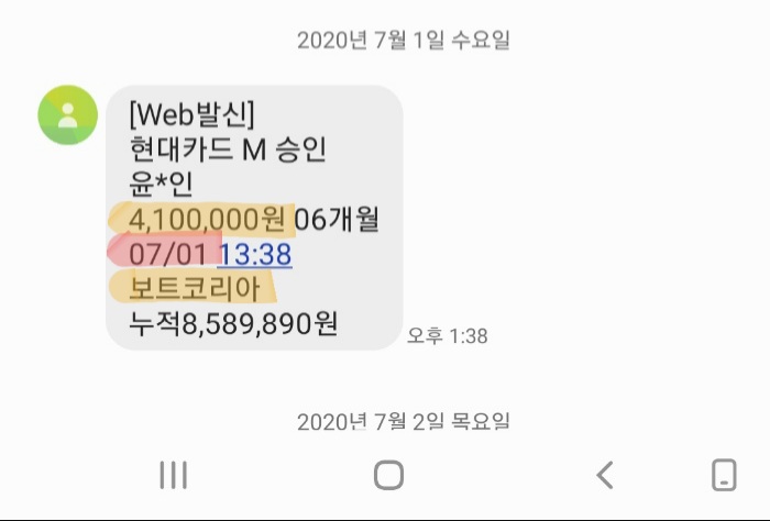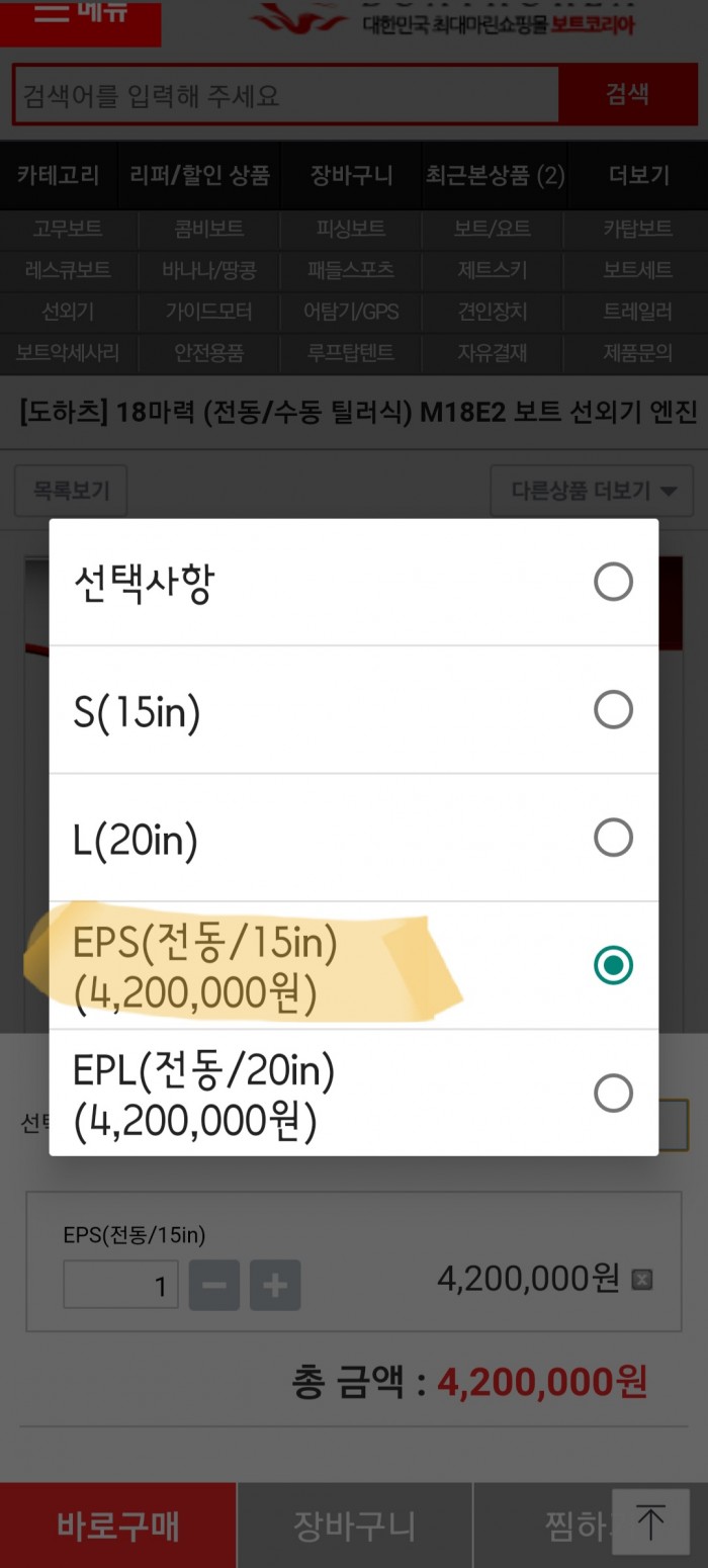 7월1일에 보트코리아 매장 직접방문해서 410만원에 산 제품 판매합니다.