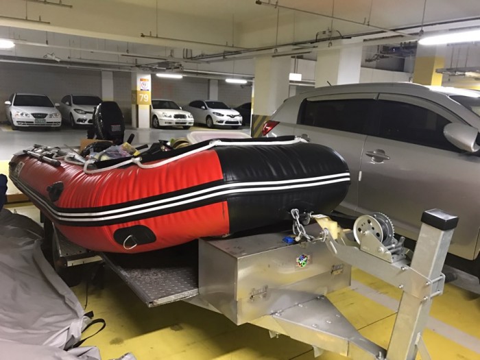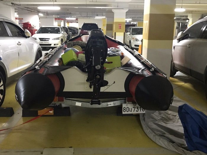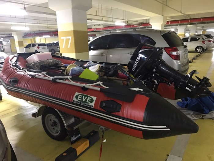 팝니다 | 고무보트 + 트레일러 + 도하스모터 15마력 (미사용 새제품)